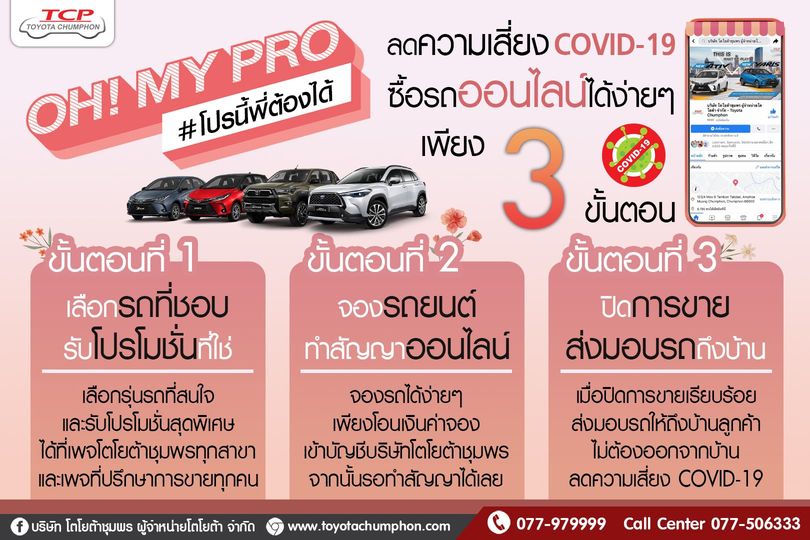 ได้ที่เพจโตโยต้าชุมพรทุกสาขา และเพจที่ปรึกษาการขายทุกคน