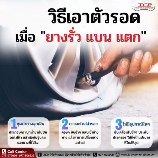 หากว่ายางยังไม่แบนมากให้ค่อยๆ ขับช้าๆ หลบเข้าข้างทาง