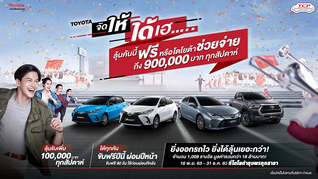 โตโยต้า จัดให้ ได้เฮ….. ลุ้นคันนี้ฟรี หรือโตโยต้าช่วยจ่าย ถึง 900,000 บาท ทุกสัปดาห์