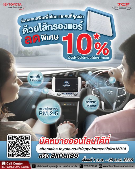 ร่วมลดมลพิษเพื่อโลก และคนที่คุณรัก ด้วยไส้กรองแอร์แท้จากโตโยต้า กรองฝุ่น PM 2.5 เพิ่มอากาศบริสุทธิ์