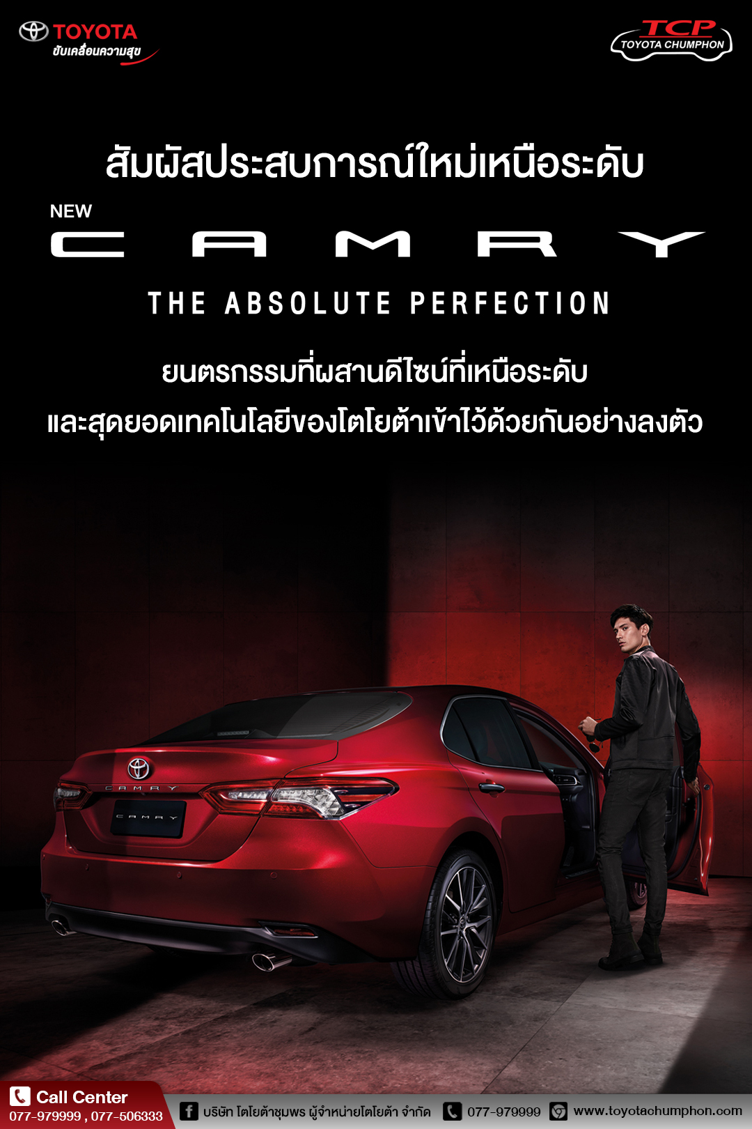 NEW CAMRY ยนตรกรรมเหนือระดับที่ก้าวไปสู่อีกขั้นของความสมบูรณ์แบบ ทั้งดีไซน์ใหม่สปอร์ตพรีเมียมในทุกมุมมอง พร้อมเทคโนโลยีของ TOYOTA เข้าไว้ด้วยกันอย่างลงตัว และสิ่งอำนวยความสะดวกครบครันที่ตอบโจทย์ไลฟ์สไตล์ผู้นำเช่นคุณ