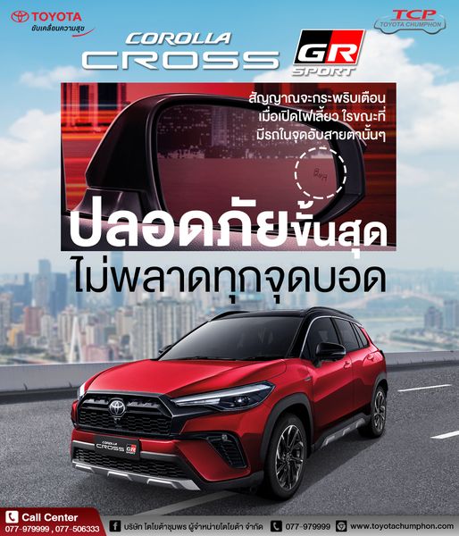 จุดอับตรงไหนก็เห็นได้ไม่มีพลาด ด้วย Blind Spot Monitor หรือระบบช่วยเตือนมุมอับสายตาที่กระจกมองข้าง ใน COROLLA CROSS GR SPORT ช่วยเพิ่มความปลอดภัยให้การขับขี่มากยิ่งขึ้น ไปสุดในทุกเส้นทางอย่างมั่นใจ