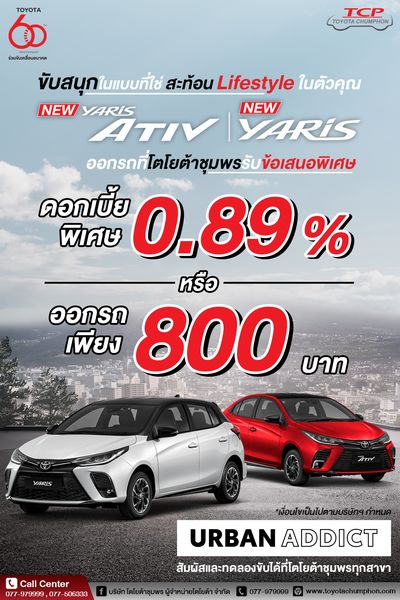 ออกรถ NEW YARIS NEW ATIV และ NEW YARIS X-URBAN ที่โตโยต้าชุมพรวันนี้ เลือกรับข้อเสนอพิเศษ 💸