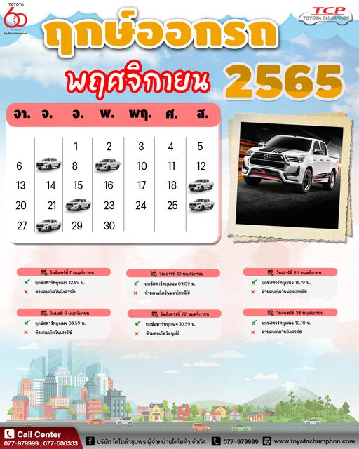 ฤกษ์ออกรถ เดือนพฤจิกายน ปี2565 🚗