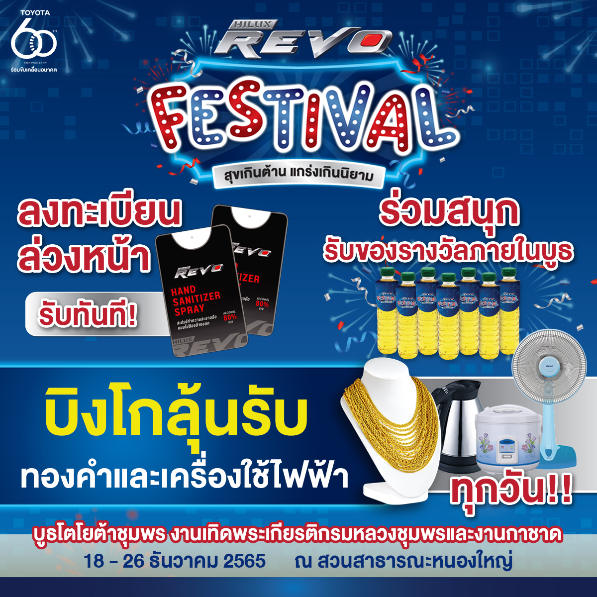 นับถอยหลัง กับมหกรรมความสนุกครั้งยิ่งใหญ่แห่งปี “Hilux Revo Festival สุขเกินต้าน แกร่งเกินนิยาม” พบกันที่งานเทิดพระเกียรติกรมหลวงชุมพรและงานกาชาด ในวันที่ 18-26 ธันวาคม 2565 นี้ !!!