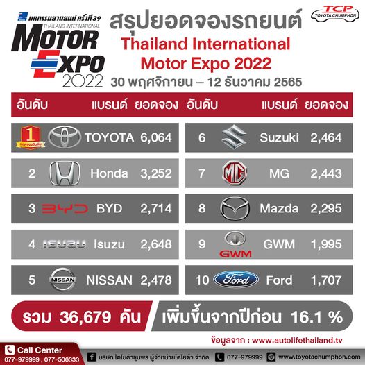 สรุปยอดจองรถยนต์ในงาน Thailand International Motor Expo 2022 ครั้งที่ 39 จัดขึ้นระหว่างวันที่ 30 พฤศจิกายน – 7 ธันวาคม 2565