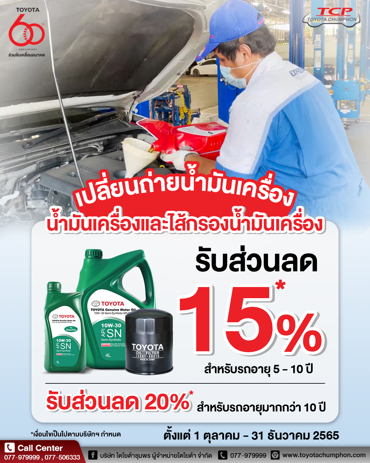 โตโยต้าชุมพร ห่วงใยรถ ห่วงใยคุณ เปลี่ยนถ่ายน้ำมันเครื่องที่ศูนย์บริการโตโยต้า