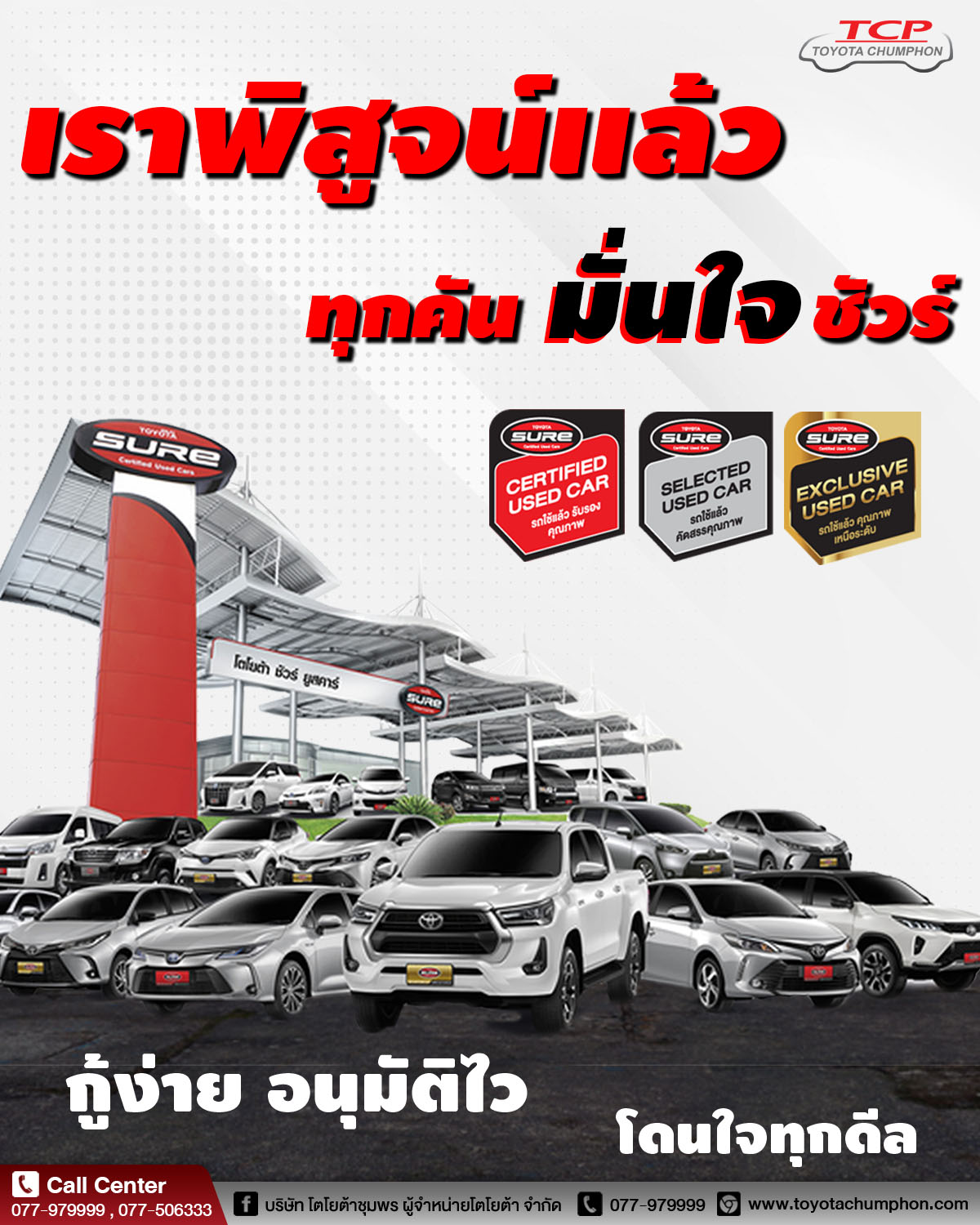 รถใช้แล้ว คุณภาพดี ต้องที่โตโยต้าชัวร์ชุมพรเท่านั้น !!