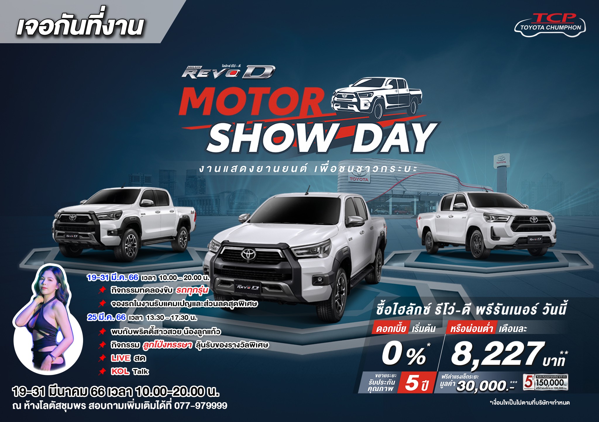 พบกับ Hilux RevoD Motor Show Day ได้ที่ โลตัส สาขาชุมพร