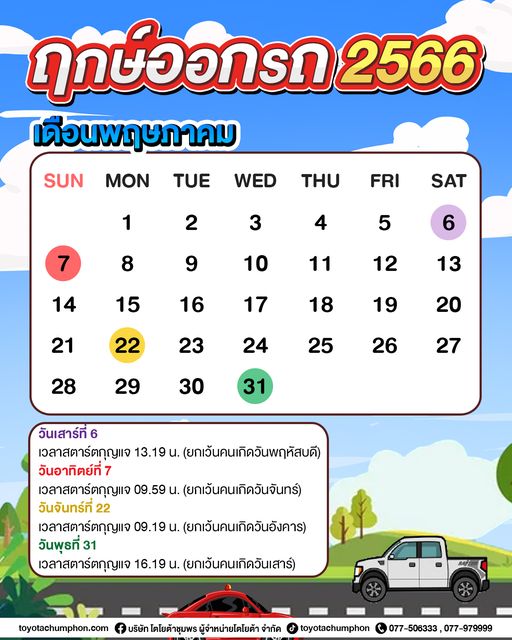ฤกษ์ออกรถ เดือนพฤษภาคมปี2566 🚗✨