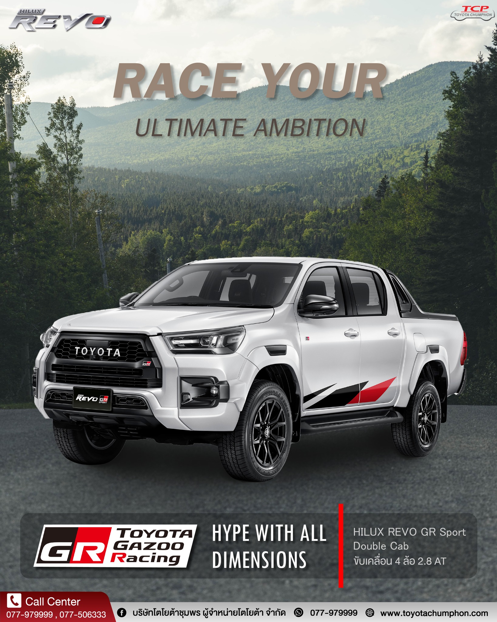Hilux Revo GR Sport ใหม่ อีกขั้นแห่งพลังแกร่งเหนือนิยาม ของกระบะสายพันธุ์สปอร์ต ที่ถ่ายทอดจิตวิญญาณจากสนามแข่งระดับโลก โฉบเฉี่ยวทุกมิติ มาพร้อมสมรรถนะที่ขับเคลื่อนประสบการณ์ขับขี่ไปอีกขั้น ![🌳]()