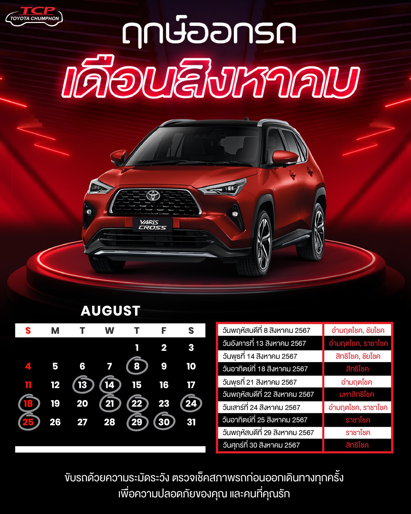 โตโยต้าชุมพร นำฤกษ์ออกรถ ประจำเดือน สิงหาคม 2567 มาฝากครับ ☺️✨