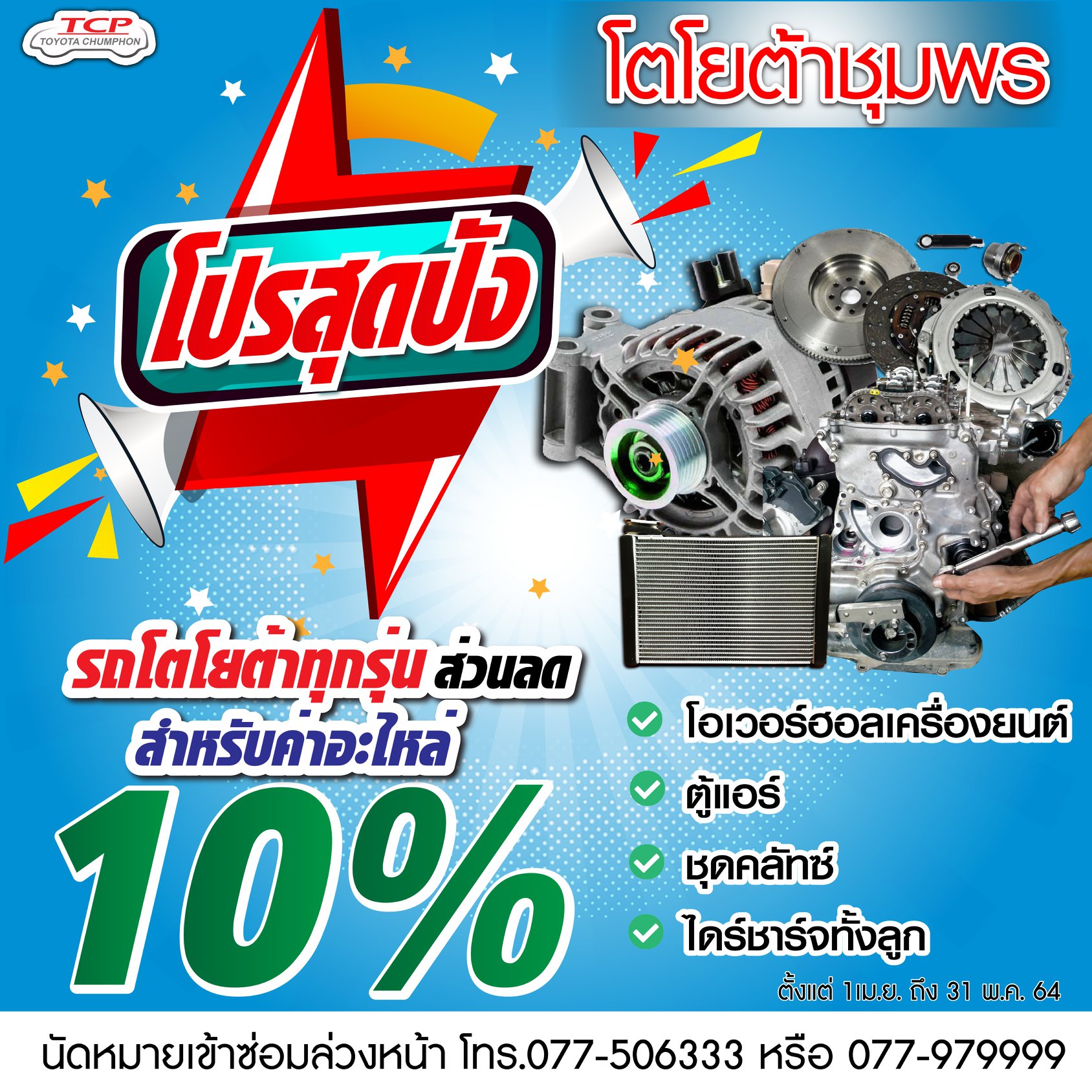 🔊🔊 โตโยต้า โปรสุดปัง💢💢 📌📌ศูนย์บริการ โตโยต้าชุมพรทุกสาขา จัดโปรสุดปัง ส่วนลดค่าอะไหล่10% สำหรับรถโตโยต้าทุกรุ่น ดังนี้ ========================