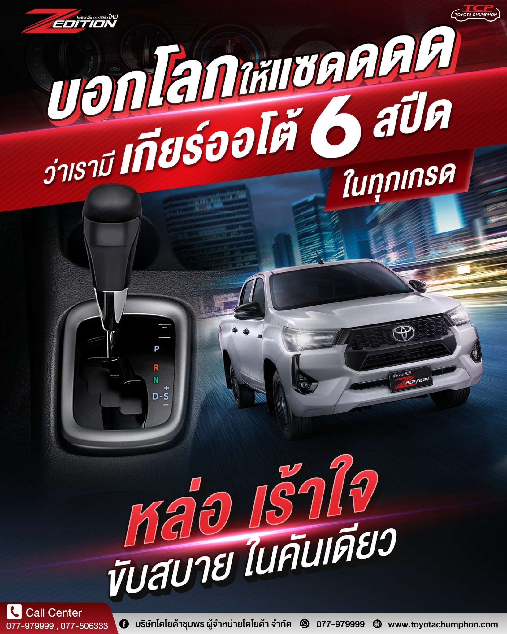 ไฮลักซ์ รีโว่ แซด อิดิชั่น มาพร้อมเกียร์อัตโนมัติ 6 สปีด ในทุกเกรด