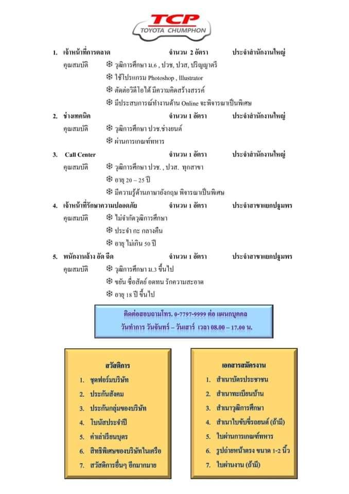 ข่าวประชาสัมพันธ์ บริษัทโตโยต้าชุมพร เปิดรับสมัครพนักงาน หลายอัตรา By toyotachumphon On พ.ค. 20, 2021 450 0 0 450 Share FacebookTwitterLINE