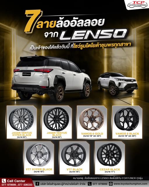 หมายเหตุ: ล้ออัลลอยจาก LENSO ติดตั้งได้กับ FORTUNER ทุกรุ่น