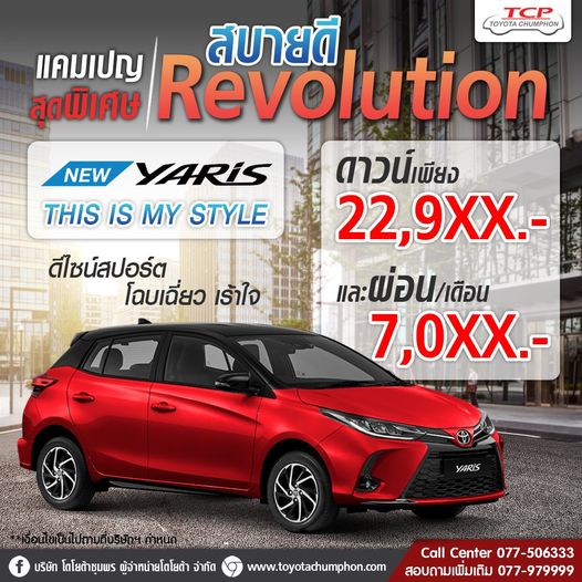 📢”สบายดี Revolution” มาแล้วค่าาาาาา โตโยต้าชุมพรจัดให้แบบพิเศษสุดๆไปเลยยย ดาวน์น้อย💸 ผ่อนสบาย💵 ไม่ต้องคิดมากแล้ว