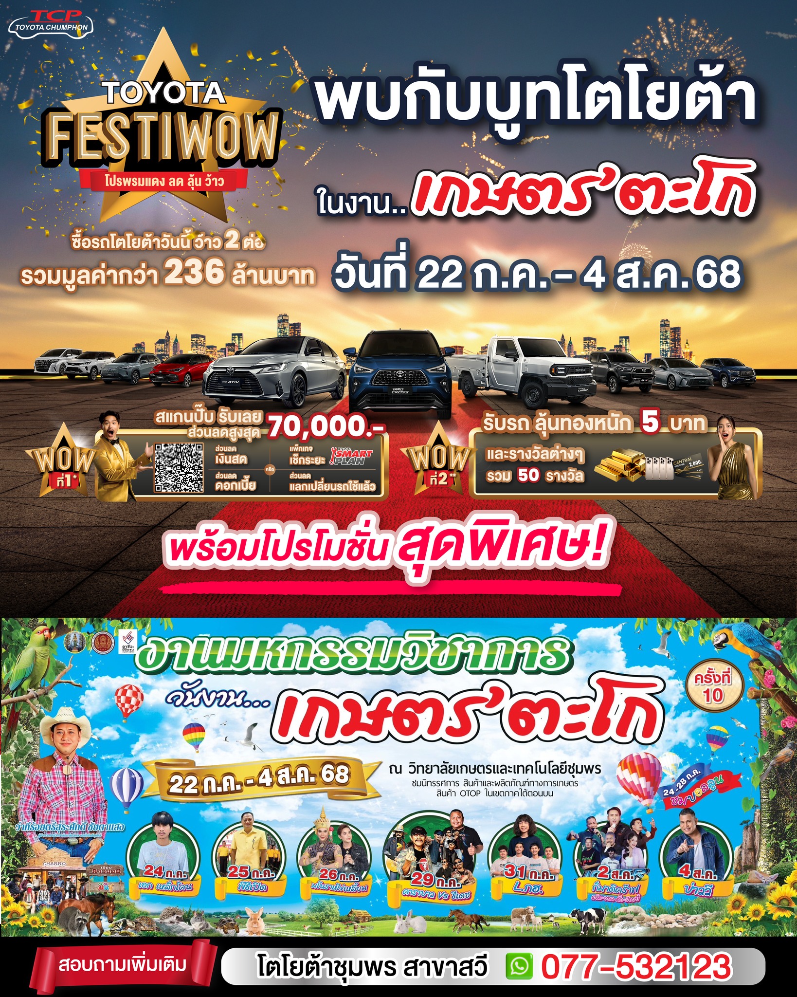 📌 แล้วเจอกันที่บูธโตโยต้าในงาน “เกษตร’ตะโก” นะครับ!