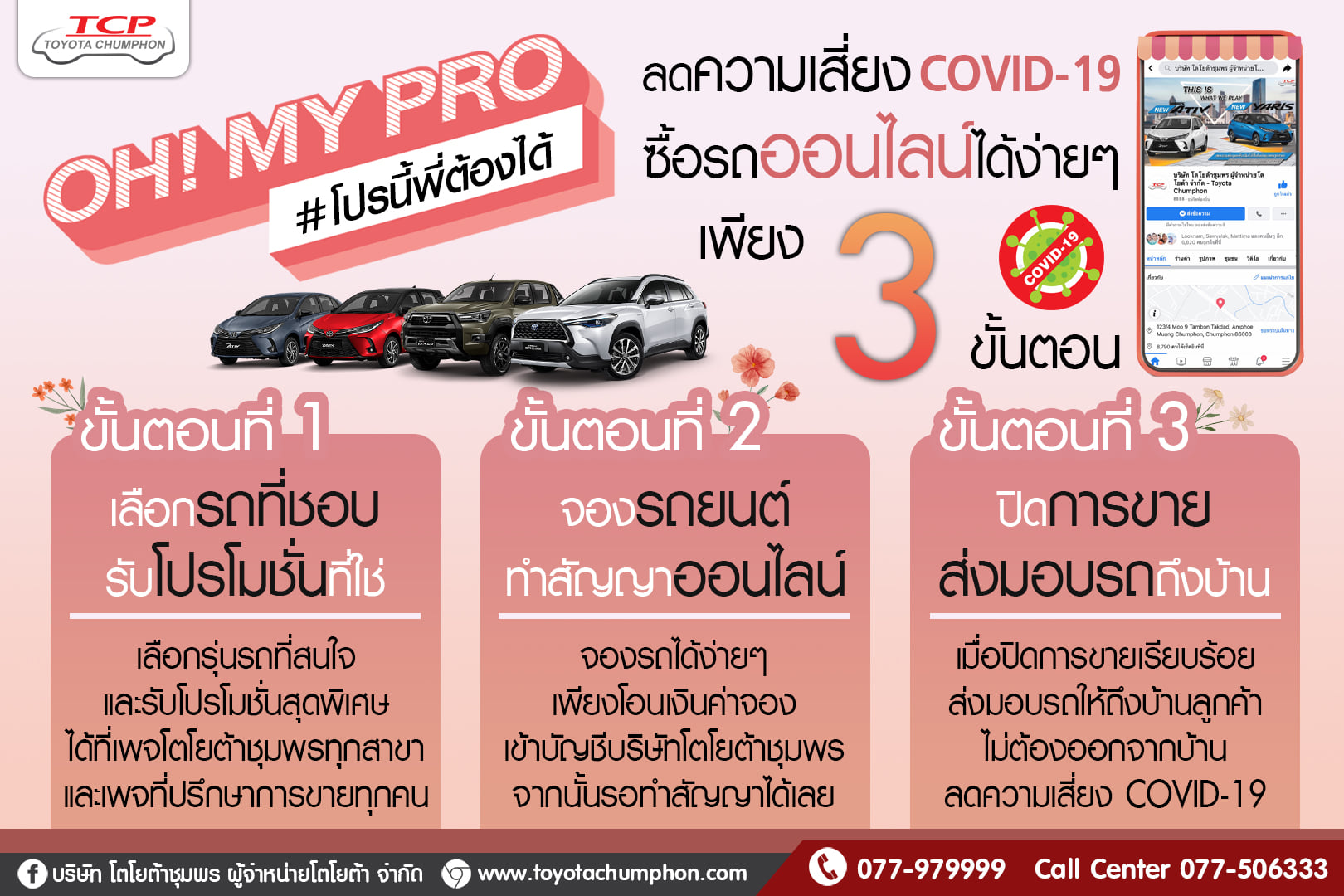 📣OH! MY PRO #โปรนี้พี่ต้องได้ เพื่อลดความเสี่ยง COVID-19 ของลูกค้า ซื้อรถออนไลน์ได้ง่ายๆเพียง 3 ขั้นตอน🤩
