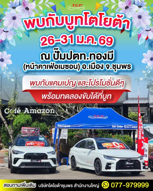 6 วันเท่านั้น! พบกับบูทโตโยต้าชุมพร พร้อมโปรโมชั่นจัดเต็ม 🚩