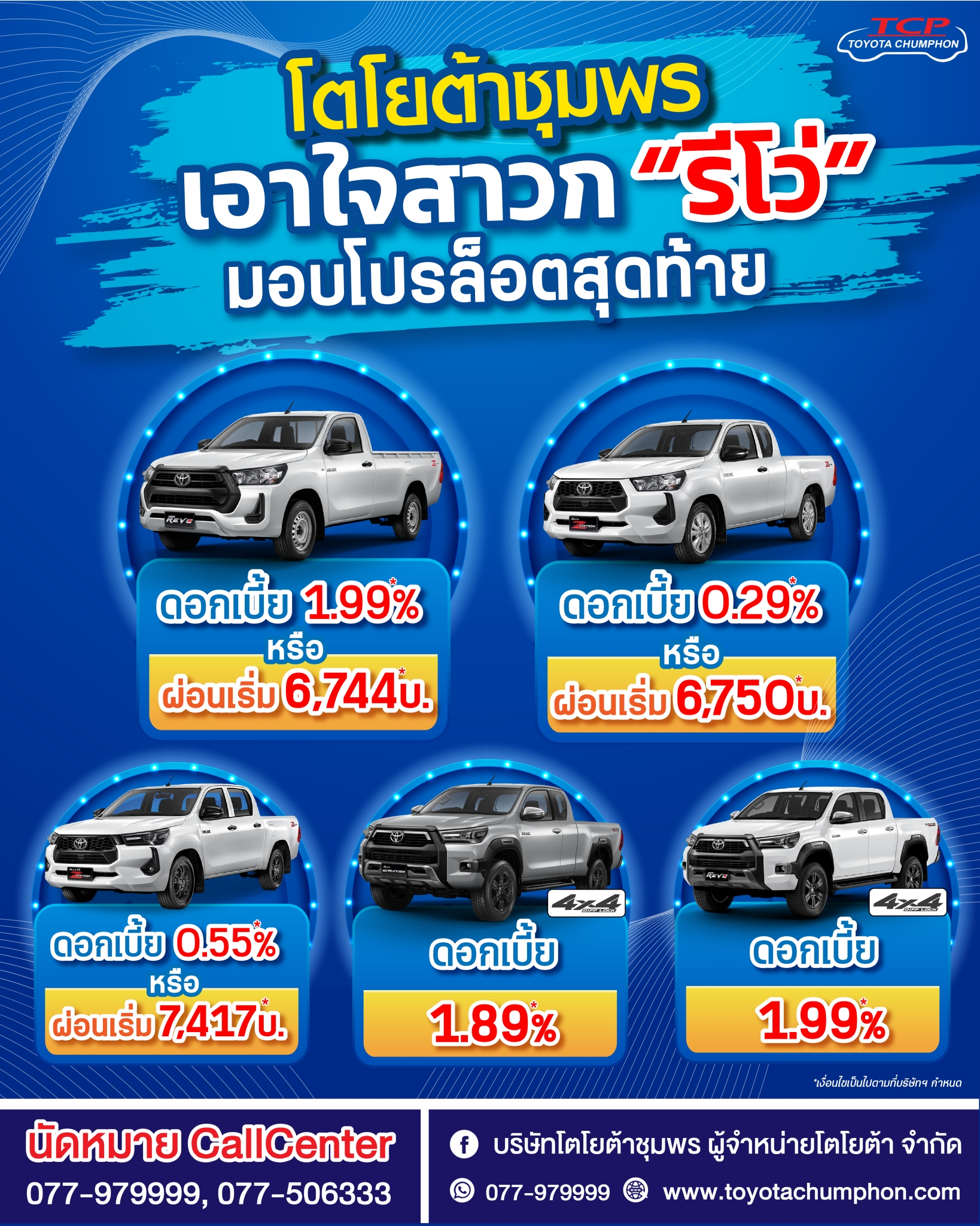 โตโยต้าชุมพร เอาใจสาวก “รีโว่” มอบโปรล็อตสุดท้าย