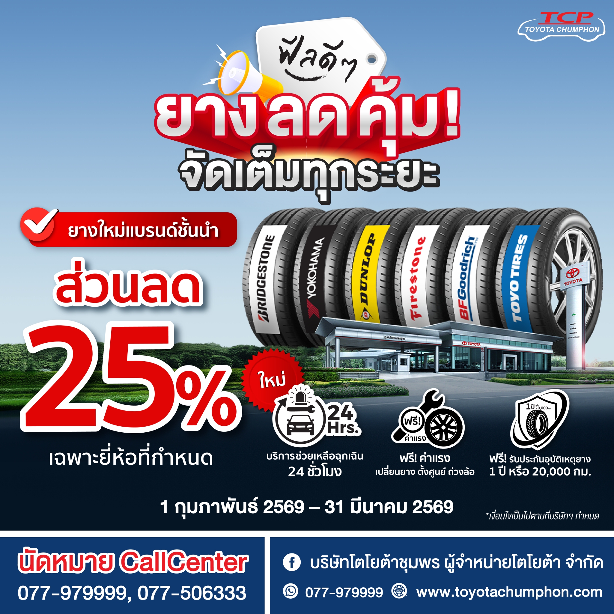 🛞 ยางใหม่แบรนด์ชั้นนำ รับส่วนลด 25%* (เฉพาะรุ่นที่กำหนด)