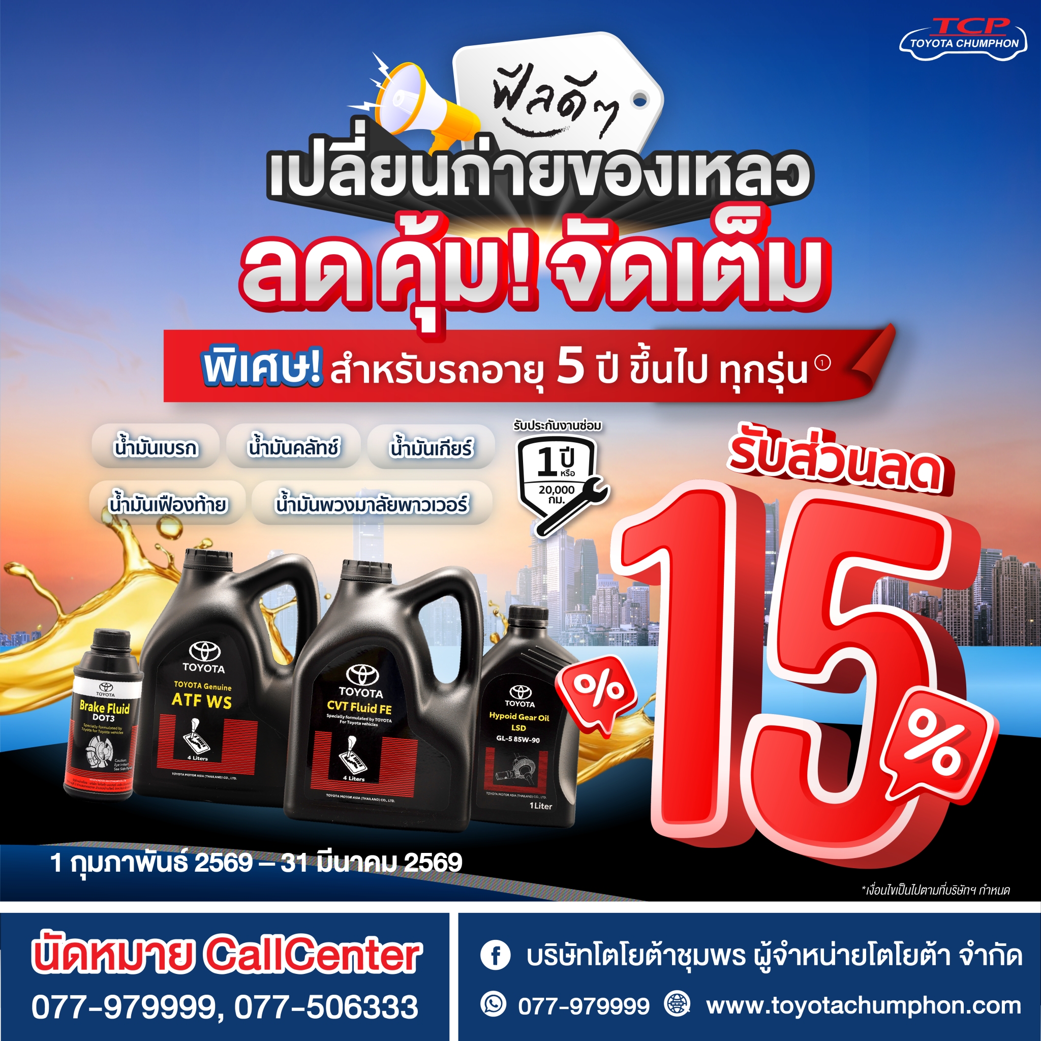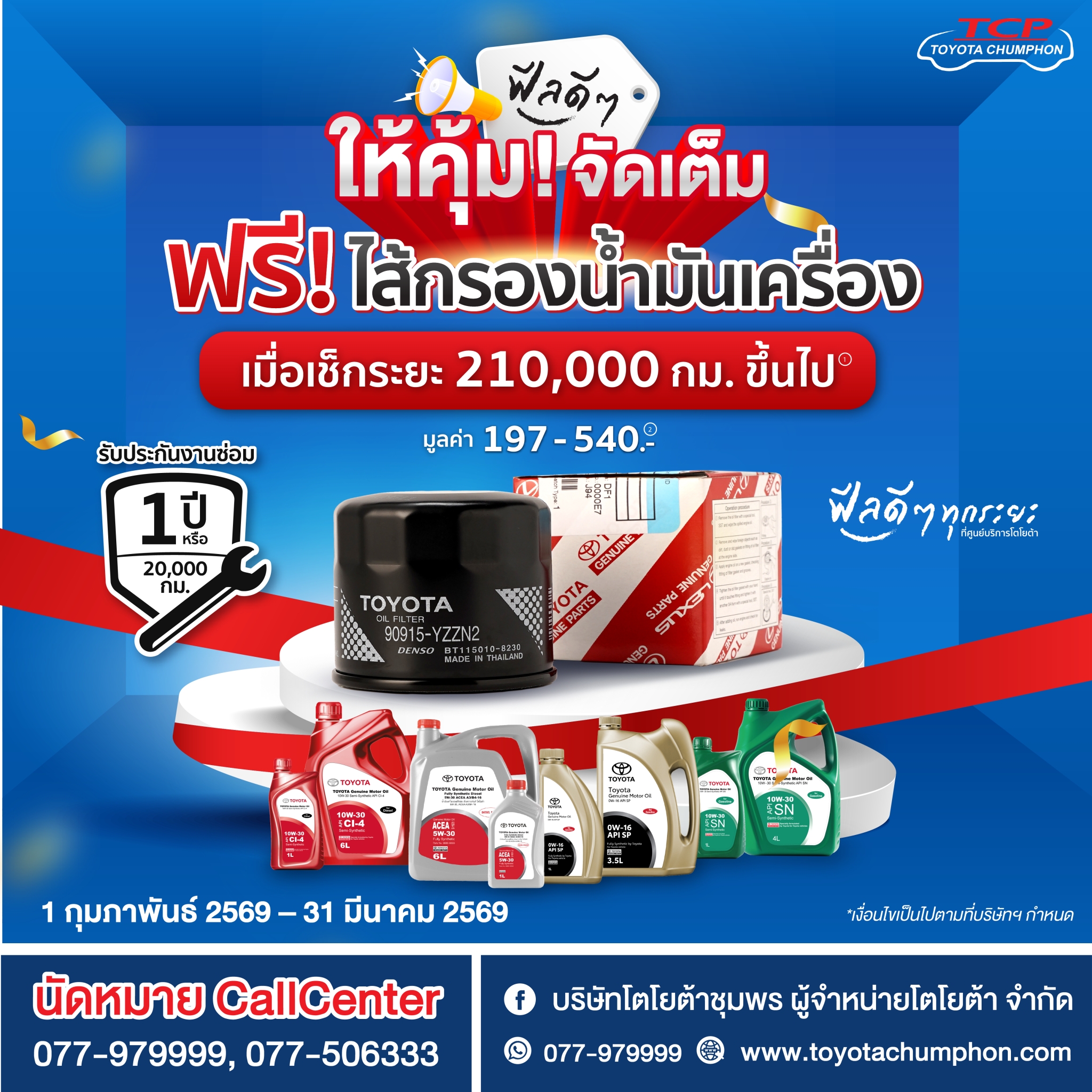 🚘 แล้วนำรถเข้ามารับบริการได้ทุกวัน ที่ 📌 โตโยต้าชุมพรทุกสาขา