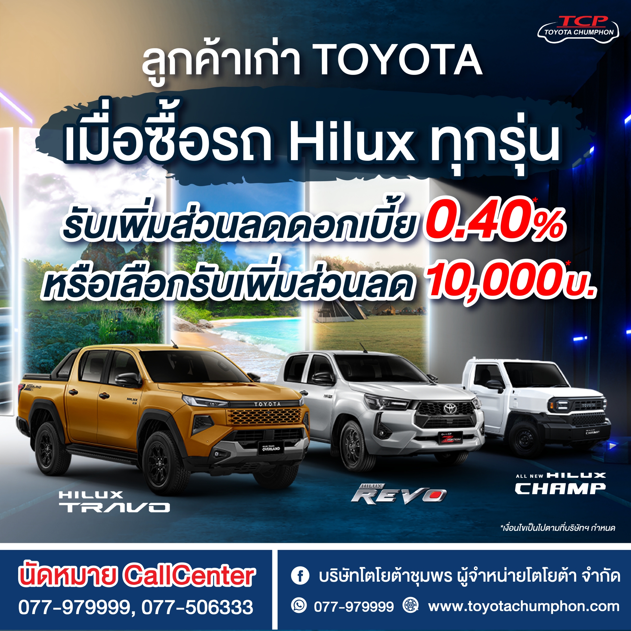 ลูกค้าเก่า 𝐓𝐎𝐘𝐎𝐓𝐀 มีเฮ! ซื้อ 𝐇𝐢𝐥𝐮𝐱 ทุกรุ่นวันนี้ รับส่วนลดเน้นๆ 📣