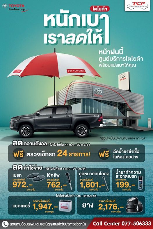 ✨หนักเบาเราลดให้ ลดความกังวล ลดค่าใช้จ่าย🎊 หน้าฝนนี้ศูนย์บริการโตโยต้าชุมพร พร้อมแบ่งเบาให้คุณ
