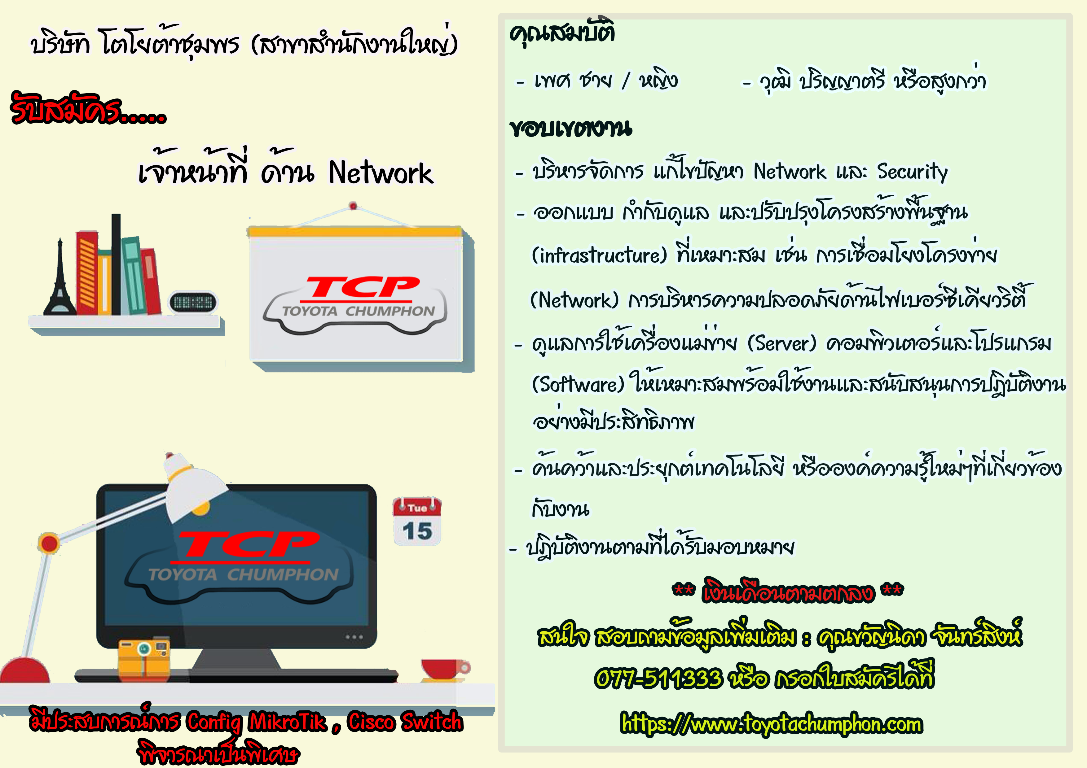 ข่าวประชาสัมพันธ์ บริษัท โตโยต้าชุมพร เปิดรับสมัคร เจ้าหน้าที่ IT ทางด้าน Network 1 ตำแหน่ง By toyotachumphon On ส.ค. 23, 2021 353 0 0 353 Share FacebookTwitterLINE