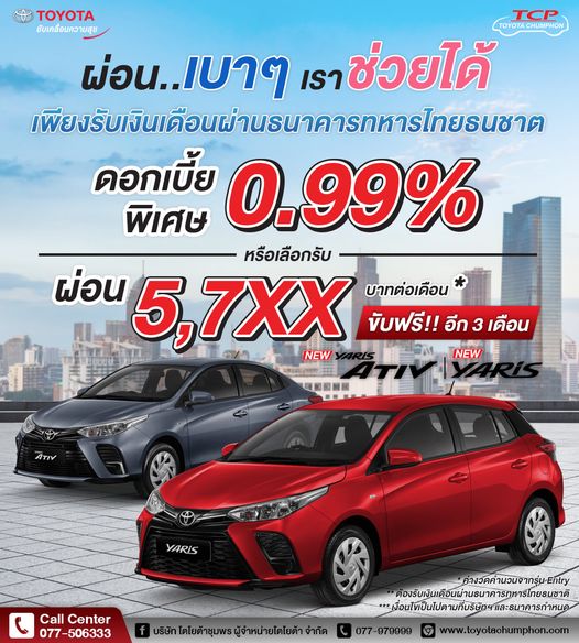 ผ่อน..เบาๆ เราช่วยได้ ที่โตโยต้าชุมพร❤ เพียงรับเงินเดือนผ่านธนาคารทหารไทยธนชาต