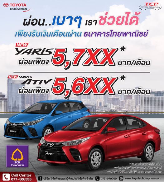 ผ่อน..เบาๆ เราช่วยได้ ที่โตโยต้าชุมพร❤ เพียงรับเงินเดือนผ่านธนาคารไทยพาณิชย์